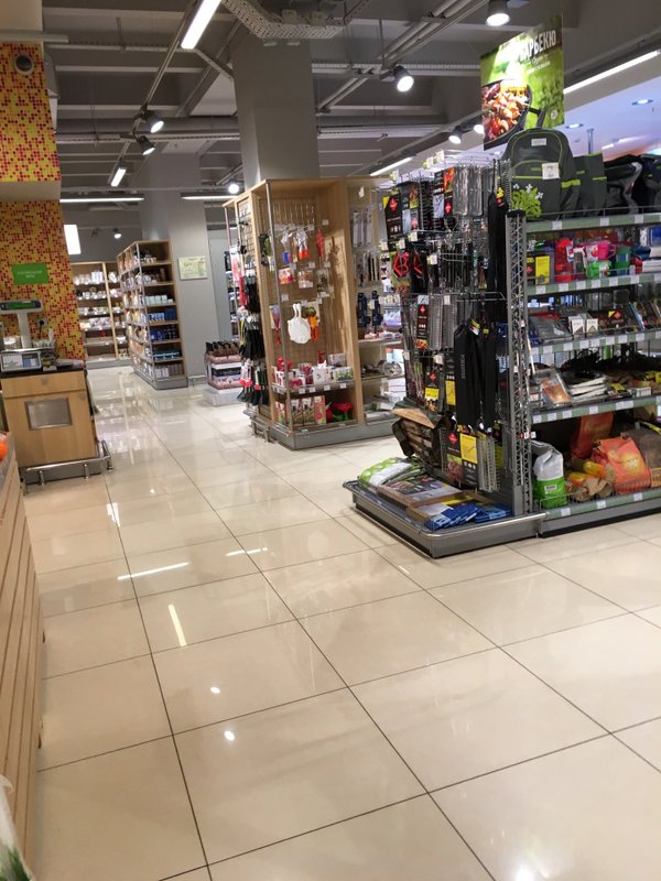 У нас продаются продукты питания наряду с предметами домашнего обихода, среди которых, помимо прочего, бытовая химия и средства гигиены. Удобство выкладки товаров и организации торговой площади, а также грамотная организация работы касс - залог того, что время, проведенное у нас, будет не только эффективным, но и приятным.